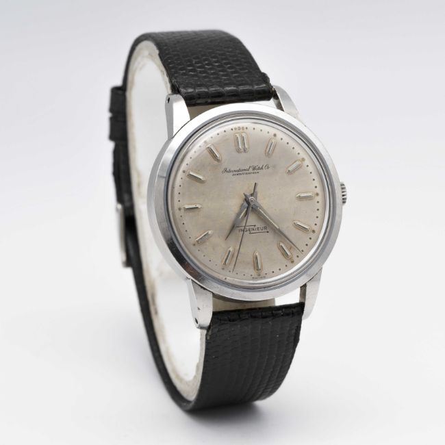 A GENTLEMAN'S STAINLESS STEEL IWC INGENIEUR AUTOMATIC WRIST WATCHCIRCA 1956, REF. 666 WITH SILVER DIAL ACCOMPANIED BY ORIGINAL IWC BOXMovement: 21J, automatic, cal. 853, signed International Watch Co, numbered 1,3xx,xxx.Case: Diameter approx. 36mm, screw back, signed International Watch Co, numbered 1,3xx,xxx, anti-magnetic dust cover, IWC crown.Strap: Leather.CONDITION REPORTDial: Original dial in good condition, showing signs of age. Movement: Running & functioning at present, timekeeping and accuracy cannot be guaranteed.Case: In excellent condition, with light scratches due to general use.Strap: In good condition.