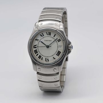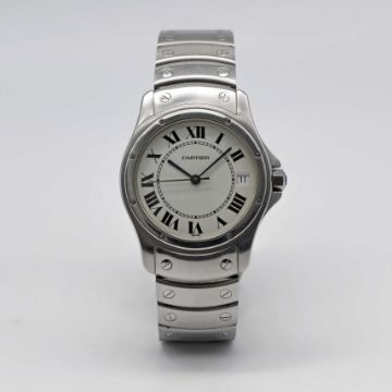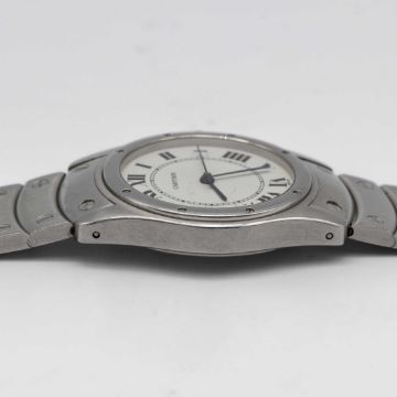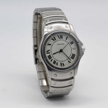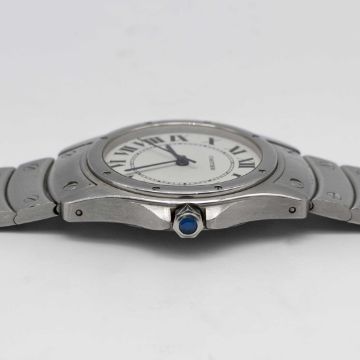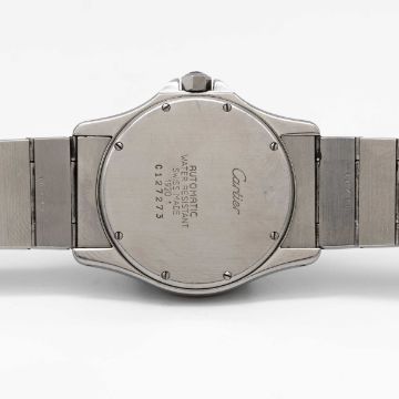 A GENTLEMAN'S STAINLESS STEEL CARTIER SANTOS RONDE AUTOMATIC BRACELET WATCHCIRCA 1990s, REF. 1920-1 Movement: Automatic, signed Cartier.Case: Diameter approx. 34mm, signed Cartier, numbered C12x,xxx, sapphire crown.Bracelet: Original Cartier Santos stainless steel bracelet.CONDITION REPORTDial: Original dial in excellent condition.Movement: Running & functioning at present, timekeeping and accuracy cannot be guaranteed.Case: In very good condition, with some light scratches due to general use.Bracelet: In very good condition, with light scratches due to general use.