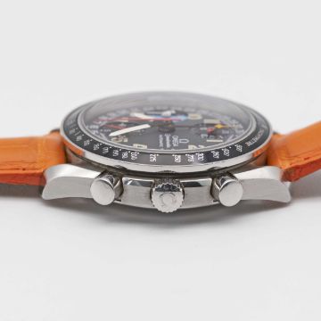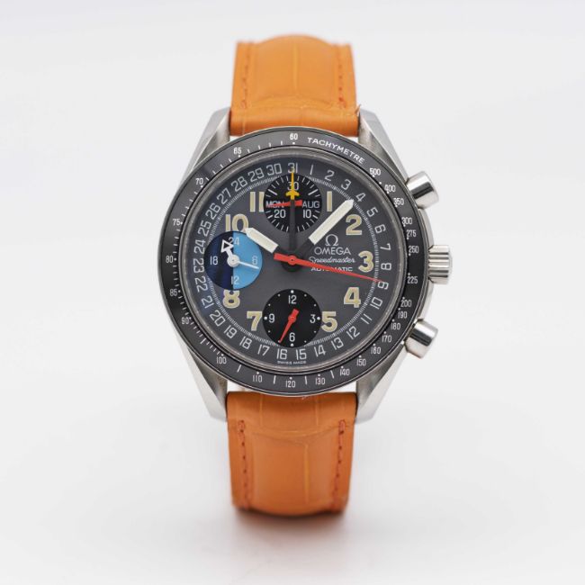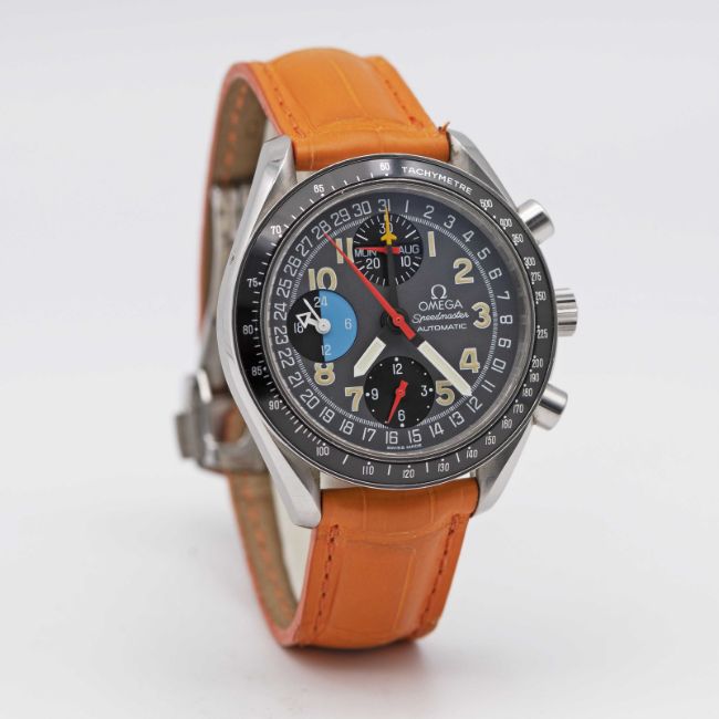 A GENTLEMAN'S STAINLESS STEEL OMEGA SPEEDMASTER "MK 40" TRIPLE CALENDAR AUTOMATIC CHRONOGRAPH WRIST WATCHCIRCA 1997, REF. 3520.53.00 FAMED BY BEN CLYMER, FOUNDER OF HODINKEE, AS THE WATCH THAT INSPIRED HIM TO START WRITING ABOUT WATCHESMovement: 25J, automatic, cal. 1151, signed Omega.Case: Diameter approx. 39mm, snap back, Speedmaster emblem embossed on case back, signed Omega, numbered 55,xxx,xxx, tachymetre bezel, Omega crown & pushers.Strap: Omega leather strap and deployment clasp,CONDITION REPORTDial: Original dial in excellent condition.Movement: Running & functioning at present, timekeeping and accuracy cannot be guaranteed.Case: In very good condition, with some light scratches due to general use.Strap: In very good condition.