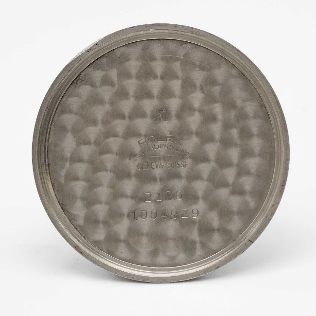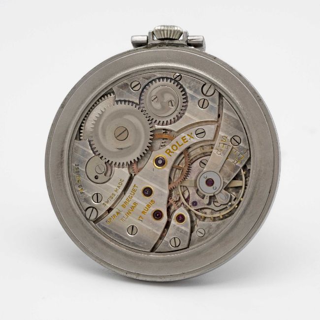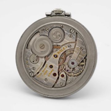 A GENTLEMAN'S STAINLESS STEEL ROLEX POCKET WATCHCIRCA 1930s, REF. 2120 ORIGINALLY RETAILED BY ASPREY WITH CO-SIGNED DIALMovement: 17J, manual wind, signed Rolex & Spiral Breguet Elinvar.Case: Diameter approx. 45mm excluding crown & bow, signed Rolex 25 Worlds Records, numbered 1,0xx,xxx.CONDITION REPORTDial: Original dial in good condition, showing signs of age. Movement: Running & functioning at present, timekeeping and accuracy cannot be guaranteed.Case: In very good condition, with some scratches due to general use.Strap: In very good condition.