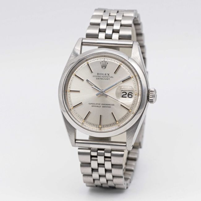 A GENTLEMAN'S STAINLESS STEEL ROLEX OYSTER PERPETUAL DATEJUST BRACELET WATCHCIRCA 1971, REF. 1600Movement: 26J, automatic chronometer, cal. 1570, signed Montres Rolex S.A., numbered.Case: Diameter approx. 36mm, Oyster case, signed Montres Rolex S.A., dated II.71, numbered 2,8xx,xxx, smooth bezel, Rolex crown.Bracelet: Condor stainless steel bracelet.CONDITION REPORTDial: Original dial in excellent condition.Movement: Running & functioning at present, timekeeping and accuracy cannot be guaranteed.Case: In excellent condition, with some light scratches due to general use.Strap/Bracelet: In excellent condition.