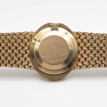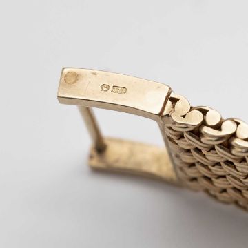 A LADIES 9CT SOLID GOLD BUECHE GIROD BRACELET WATCHDATED 1976, WITH TIGERS EYE STONE DIAL & ACCOMPANIED BY ORIGINAL BOX AND CERTIFICATEMovement: 17J, manual wind, signed Bueche Girod.Case: Width approx. 27mm, 9ct hallmarks, Bueche Girod crown.Bracelet: Original 9k solid gold bracelet, 9ct hallmarks, total length measures approx 168mm.CONDITION REPORTDial: Original dial in good condition, showing some signs of age. Movement: Running & functioning at present, timekeeping and accuracy cannot be guaranteed.Case: In excellent condition, with light scratches due to general use.Bracelet: In excellent condition.
