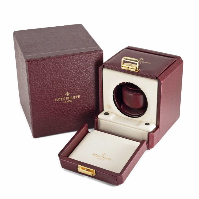 A BURGUNDY LEATHER COVERED PATEK PHILIPPE WATCH WINDER IN ITS ORIGINAL OUTER BOXCIRCA 1990The winder measures approx 11.5cm / 12.5cm / 13cm.CONDITION REPORTThe overall condition is very good with some wear to the inside. In working order.