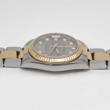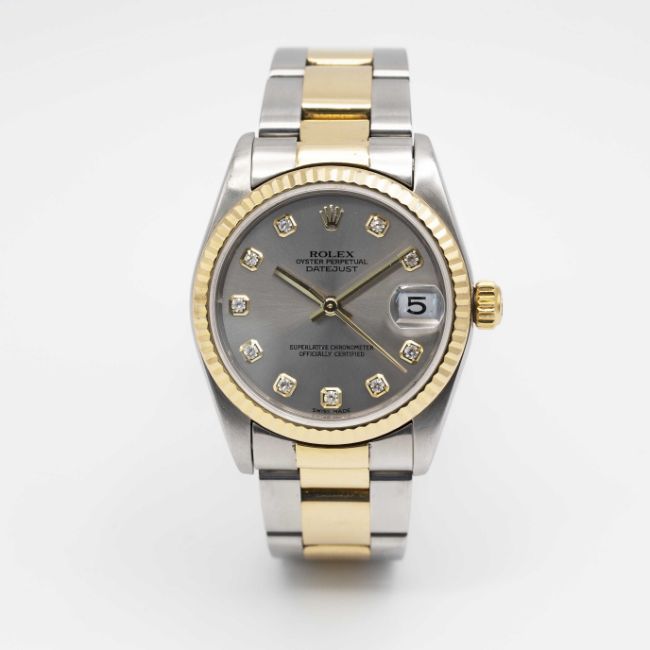 A MID SIZE STEEL & GOLD ROLEX OYSTER PERPETUAL DATEJUST BRACELET WATCHCIRCA 2004, REF. 78273 WITH ORIGINAL DIAMOND DIAL Movement: 31J, automatic chronometer, cal. 2235, signed Rolex S.A., numbered.Case: Diameter approx. 31mm, Oyster case, signed Rolex S.A., serial no. F,62x,xxx, fluted bezel, Rolex crown.Bracelet: Original Rolex Oyster steel and gold bracelet, numbered CL4/78053/451 BCONDITION REPORTDial: Original dial in excellent condition.Movement: Running & functioning at present, timekeeping and accuracy cannot be guaranteed.Case: In very good condition, with some light scratches due to general use.Strap/Bracelet: In very good condition, with some light scratches and wear due to general use.
