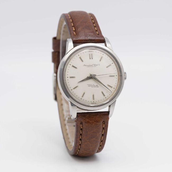 A GENTLEMAN'S STAINLESS STEEL IWC INGENIEUR AUTOMATIC WRIST WATCHCIRCA 1958, REF. 666 Movement: 21J, automatic, cal. 853, signed International Watch Co, numbered 1,5xx,xxx.Case: Diameter approx. 36.5mm, screw back, signed International Watch Co, numbered 1,4xx,xxx, anti-magnetic dust cover.Strap: Leather.CONDITION REPORTDial: Original dial in very good, showing some signs of age. Movement: Running & functioning at present, timekeeping and accuracy cannot be guaranteed.Case: In very good condition, with scratches due to general use.Strap: In excellent condition.