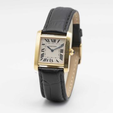 AN 18K SOLID GOLD CARTIER TANK FRANCAISE WRIST WATCHCIRCA 2000, REF. 1821Movement: Quartz, signed Cartier.Case: Width approx. 30mm by 25mm, signed Cartier, 18k hallmarks, numbered, original sapphire crown.Strap: Leather strap.CONDITION REPORTDial: Original dial in excellent condition.Movement: Running & functioning at present, timekeeping and accuracy cannot be guaranteed.Case: In good condition, with scratches due to general use.Strap: In excellent condition.
