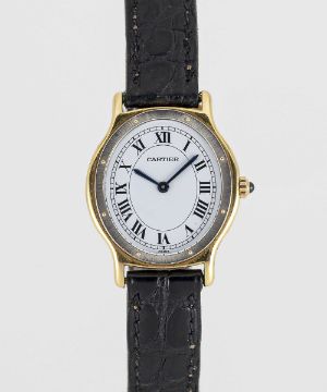 A LADIES 18K YELLOW & WHITE GOLD CARTIER PARIS ARCADE WRIST WATCHDATED 1987, REF. 96059 ACCOMPANIED BY ORIGINAL BOX AND WARRANTY CARDMovement: Manual wind, signed Cartier.Case: Width approx. 24.3mm, signed Cartier Paris, numbered, 18K hallmarks, sapphire crown.Strap: Cartier leather strap with gold plated Cartier pin buckle.CONDITION REPORTDial: Original dial in excellent condition.Movement: Running & functioning at present, timekeeping and accuracy cannot be guaranteed.Case: In excellent condition, with some light scratches due to general use.Strap: Strap in fair condition, with some ageing. Tarnishing to pin buckle.