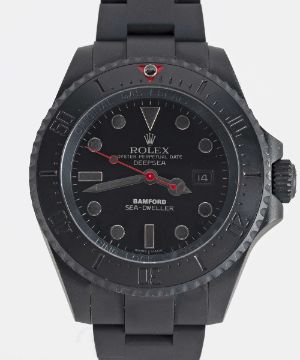 A GENTLEMAN'S PVD COATED STAINLESS STEEL BAMFORD ROLEX OYSTER PERPETUAL SEA DWELLER DEEPSEA BRACELET WATCHCIRCA 2016, REF. 116660 WITH BAMFORD WATCH DEPARTMENT BOXMovement: Automatic chronometer, cal. 3135, signed Rolex, numbered.Case: Diameter approx. 43mm, Oyster case, signed Rolex, fully graduated 60 minute Cerachrom rotating bezel with matt finish & red triangle, helium escape valve ring lock system, Rolex triplock crown.Bracelet: Original PVD coated Rolex Oyster Deepsea Sea-Dweller bracelet.CONDITION REPORTDial: Original dial in excellent condition.Movement: Running & functioning at present, timekeeping and accuracy cannot be guaranteed.Case: In excellent condition.Strap/Bracelet: In excellent condition.