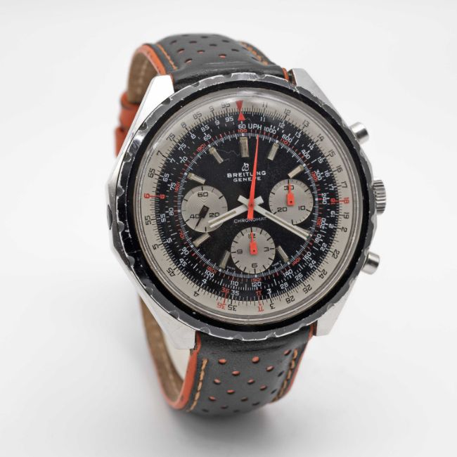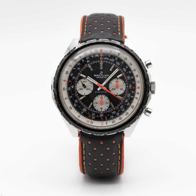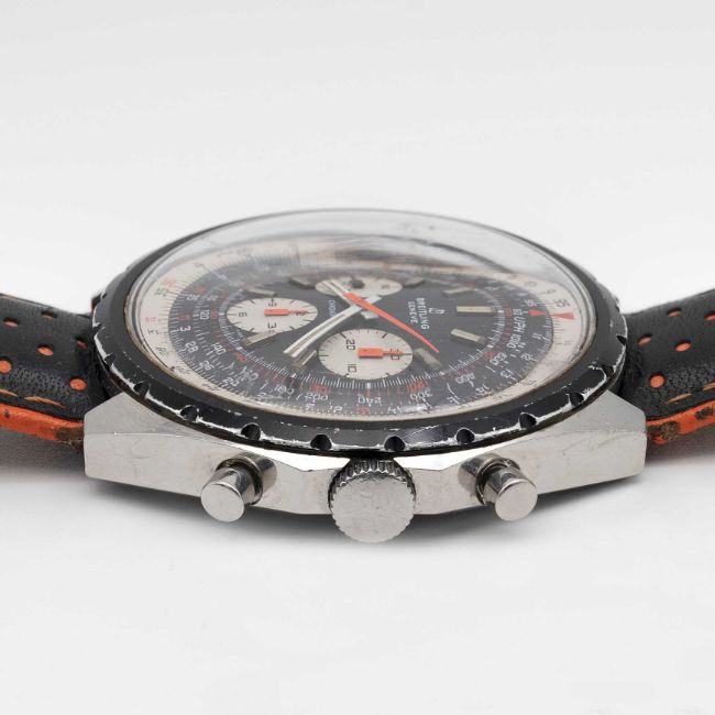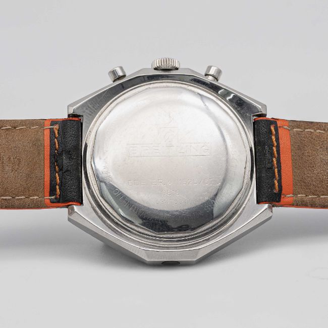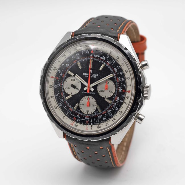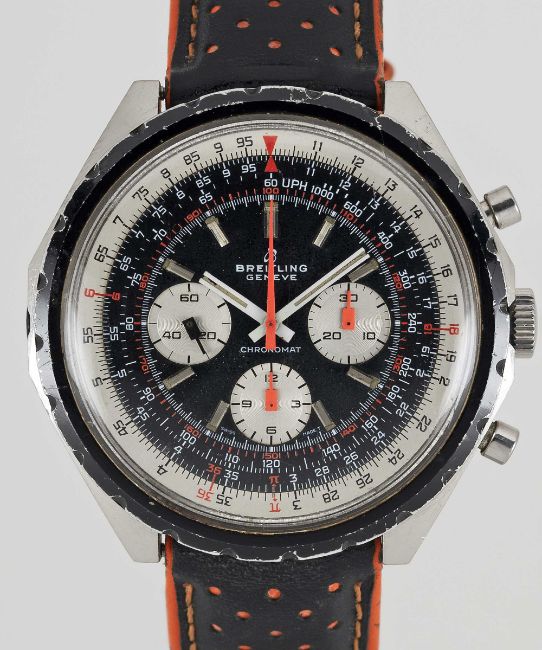 A GENTLEMAN'S STAINLESS STEEL BREITLING CHRONOMAT CHRONOGRAPH WRIST WATCHCIRCA 1970s, REF. 0818 Movement: 17J, manual wind, cal. 17, signed Breitling Watch Ltd.Case: Width approx. 48mm, screw back, signed Breitling Watch Ltd , numbered, slide rule inner bezel.Strap: Leather. CONDITION REPORTDial: Original dial in very good condition, showing some small signs of age. Movement: Running & functioning at present, timekeeping and accuracy cannot be guaranteed.Case: In good condition, with scratches and wear due to general use.Strap: In good condition.