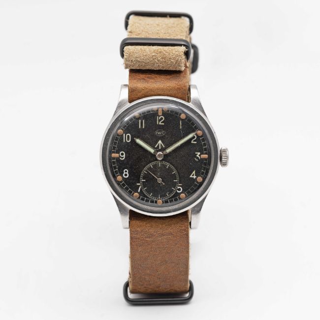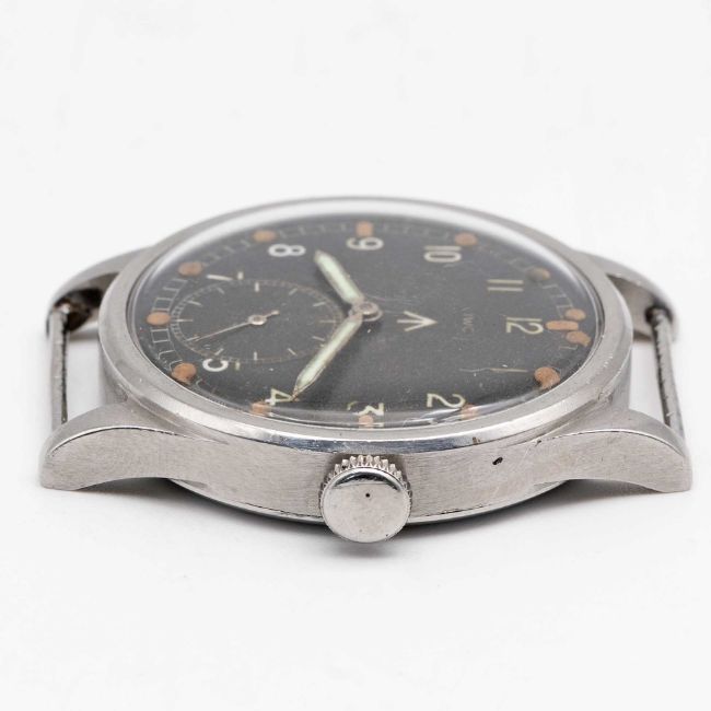 A GENTLEMAN'S STAINLESS STEEL BRITISH MILITARY IWC MARK 10 W.W.W. WRIST WATCHCIRCA 1945, PART OF THE "DIRTY DOZEN"Movement: Manual wind, cal. 83, signed International Watch Co, numbered 1,0xx,xxx.Case: Diameter approx. 35mm, fixed bars, snap back, signed IWC, numbered 1,1xx,xxx, issue markings ^ W.W.W. M15260.Strap: NATO.CONDITION REPORTDial: Original dial in good condition, showing signs of age.Movement: Running & functioning at present, timekeeping and accuracy cannot be guaranteed.Case: In very good condition, with some scratches and light wear due to use.Strap/Bracelet: In excellent condition.