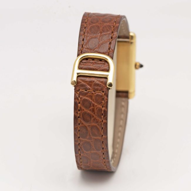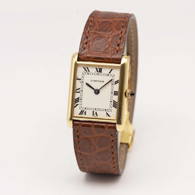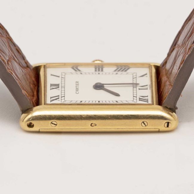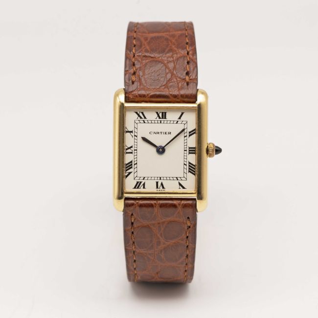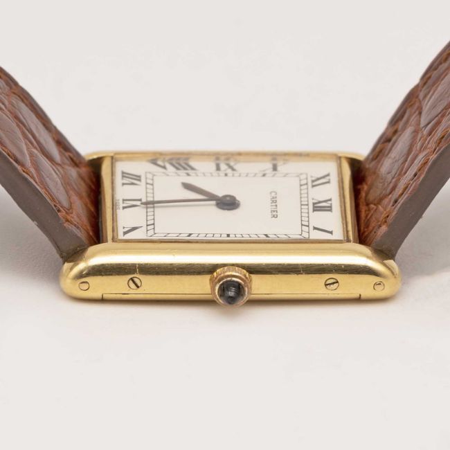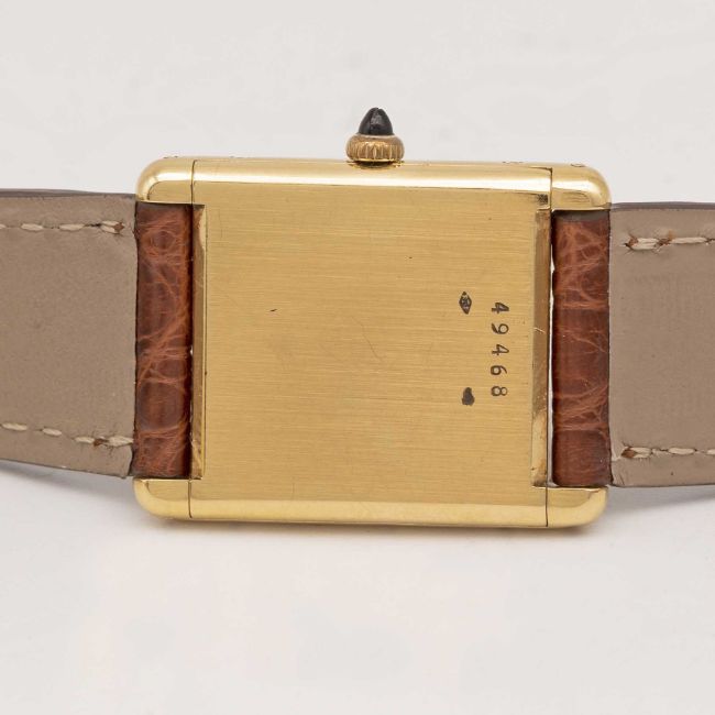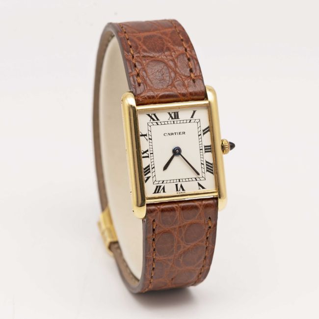 A GENTLEMAN'S 18K SOLID GOLD CARTIER PARIS TANK LOUIS MECANIQUE WRIST WATCHCIRCA 1960sMovement: 18J, manual wind, LeCoultre base cal. K821/1, signed Cartier, numbered 1,78x,xxx.Case: Measures approx. 30.5mm by 23.5mm, with two sets of numbers on case back (one set worn), numbered 49,xxx, French hallmarks, sapphire crown.Strap: Leather strap with unsigned Cartier style yellow metal deployment clasp.CONDITION REPORTDial: Refinished dial in excellent condition.Movement: Running & functioning at present, timekeeping and accuracy cannot be guaranteed.Case: In very good condition, with light scratches due to general use.Strap/Bracelet: In excellent condition.