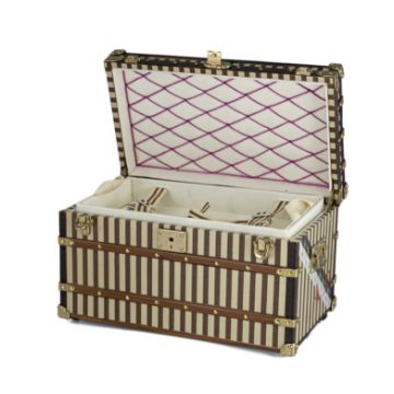 A MINIATURE LOUIS VUITTON "COURIER" TRUNK JEWELLERY BOXCase: Measures approx.115mm by 67mm by 65mm.In excellent condition. No damage.
