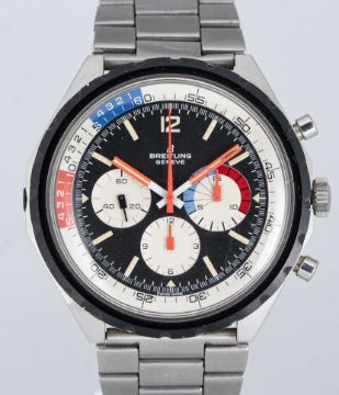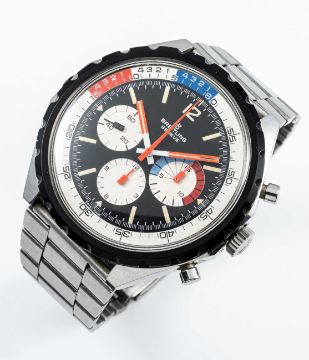 A RARE GENTLEMAN'S STAINLESS STEEL BREITLING CO-PILOT YACHTING CHRONOGRAPH BRACELET WATCHCIRCA 1968, REF. 7652Movement: 17J, manual wind, Venus cal. 178, signed Breitling Watch Ltd. Case: Diameter approx. 48mm, screw back, signed Breitling, numbered 1,24x,xxx, slide rule inner bezel, Breitling crown.Bracelet: Breitling bracelet with adjustable clasp.CONDITION REPORTDial: Original dial in excellent condition.Movement: Running & functioning at present, timekeeping and accuracy cannot be guaranteed.Case: In excellent condition, with light scratches due to occasional use.Strap/Bracelet: In very good condition, with some scratches due to use.