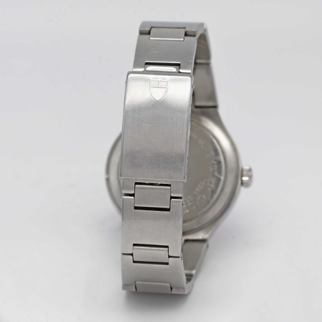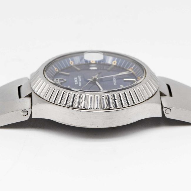 A GENTLEMAN'S STAINLESS STEEL TUDOR PRINCE QUARTZ OYSTERDATE BRACELET WATCHCIRCA 1980, REF. 9140/0 WITH BLUE DIALMovement: 7J, quartz, cal. 940.111, signed Tudor.Case: Diameter approx. 38mm, Oyster case, signed Montres Tudor S.A., serial no. 93x,xxx, Rolex crown.Bracelet: Original Tudor bracelet numbered 9585.CONDITION REPORTDial: Original dial invert good condition, showing small signs of age.Movement: Running & functioning at present, timekeeping and accuracy cannot be guaranteed.Case: In very good condition, with some scratches due to general use.Strap/Bracelet: In very good condition.