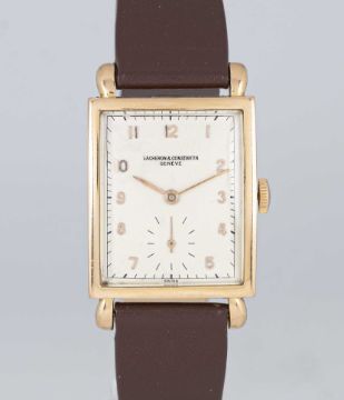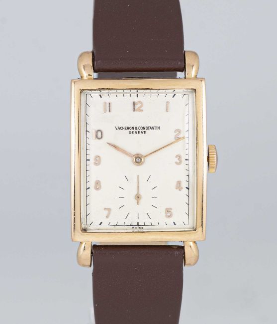 A GENTLEMAN'S 18K SOLID ROSE GOLD VACHERON & CONSTANTIN RECTANGULAR WRIST WATCHCIRCA 1940sMovement: 17J, manual wind, cal. V435, signed Vacheron & Constantin, numbered.Case: Approx. 40mm by 25mm, snap back case, signed Vacheron & Constantin, 18k hallmarks, numbered.Strap: Leather.CONDITION REPORTDial: Dial in good condition, showing signs of age.Movement: Running & functioning at present, timekeeping and accuracy cannot be guaranteed.Case: In very good condition, with some light scratches due to general use.Strap/Bracelet: In very good condition.