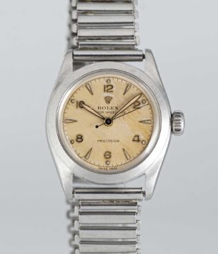 A GENTLEMAN'S STAINLESS STEEL ROLEX OYSTER SPEEDKING PRECISION WRIST WATCHCIRCA 1951, REF. 6020Movement: 17J, manual wind, cal. 710, signed Rolex Precision Superbalance.Case: Diameter approx. 30mm, Oyster case, signed Rolex, serial no. 71x,xxx, Rolex crown.Bracelet: Bonklip bracelet.CONDITION REPORTDial: Original dial in good condition, showing some signs of age & patina.Movement: Running & functioning at present, timekeeping and accuracy cannot be guaranteed.Case: In very good condition, with light scratches due to general use.Strap/Bracelet: In very good condition.