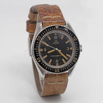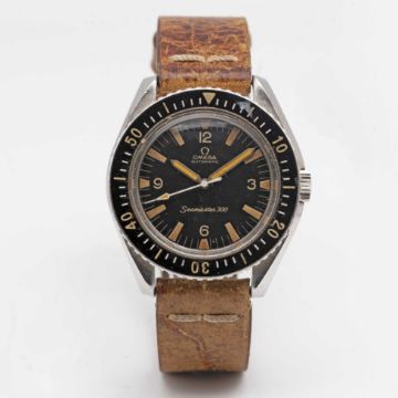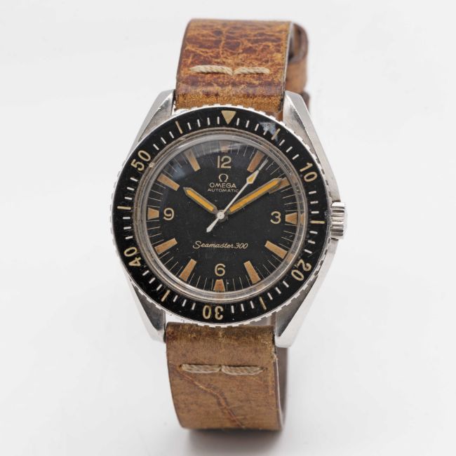 A RARE GENTLEMAN'S STAINLESS STEEL OMEGA SEAMASTER 300 AUTOMATIC WRIST WATCHDATED 1964, REF. 165.024-63 WITH FIRST SERIES NON-T DIAL & THIN FONT BEZEL, ACCOMPANIED BY OMEGA ARCHIVE EXTRACT CONFIRMING DELIVERY TO AUSTRALIA IN APRIL 1964Movement: 24J, automatic, cal. 552, signed Omega Watch Co., numbered 20,3xx,xxx.Case: Diameter approx. 42mm, screw back, signed Omega Watch Co, first series acrylic bezel, Omega crown.Strap: Leather.CONDITION REPORTDial: Original dial in excellent condition, showing some small signs of age.Movement: Running & functioning at present, timekeeping and accuracy cannot be guaranteed.Case: In very good condition, with some small scratches due to general use.Strap/Bracelet: In fair condition.