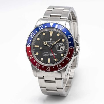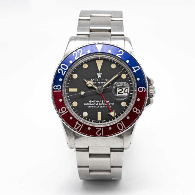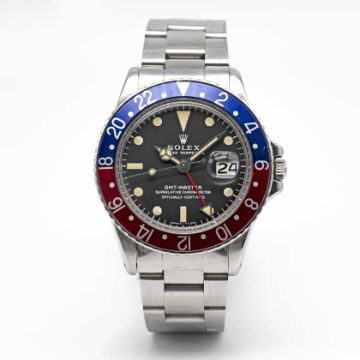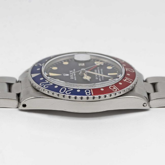 A GENTLEMAN'S STAINLESS STEEL ROLEX OYSTER PERPETUAL DATE GMT MASTER "PEPSI" BRACELET WATCHCIRCA 1970, REF. 1675 WITH "LONG E" MARK 1 MATTE DIAL, ACCOMPANIED BY ROLEX SERVICE GUARANTEE PAPERWORK FROM 2000 & 2008Movement: 26J, automatic chronometer, cal. 1570, signed Montres Rolex S.A., numbered.Case: Diameter approx. 40mm, Oyster case, 16750 service case back signed Montres Rolex S.A., 24 hour rotating "Pepsi" bezel, Rolex crown.Bracelet: Rolex Oyster bracelet, numbered DE1/78360/580.CONDITION REPORTDial: Original dial in very good condition, luminous degrading from some of the markers.Movement: Running & functioning at present, timekeeping and accuracy cannot be guaranteed.Case: In good condition, with some scratches & wear due to general use.Strap/Bracelet: In very good condition, with light scratches.