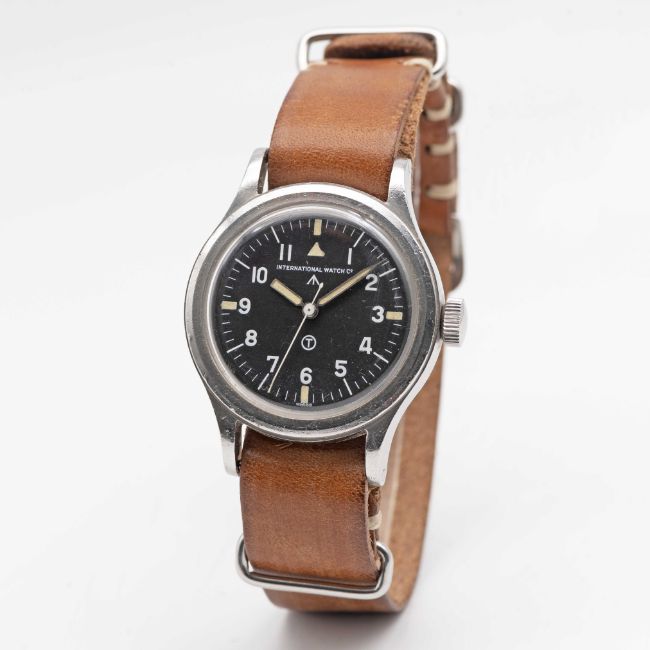 A RARE GENTLEMAN'S STAINLESS STEEL BRITISH MILITARY IWC MARK 11 RAF PILOTS WRIST WATCHDATED 1952, WITH "HOOKED 7" DIALMovement: Manual wind, hacking seconds, cal. 89, signed International Watch Co with military arrow, numbered 1,2xx,xxx.Case: Diameter approx. 36mm, fixed bars, screw back, signed International Watch Co, issue markings ^ 6B/346 1406/52, anti-magnetic dust cover.Strap: Leather NATO.CONDITION REPORTDial: Original dial in excellent condition.Movement: Running & functioning at present, timekeeping and accuracy cannot be guaranteed.Case: In very goos condition, with some scratches and wear due to general use.Strap/Bracelet: In excellent condition.