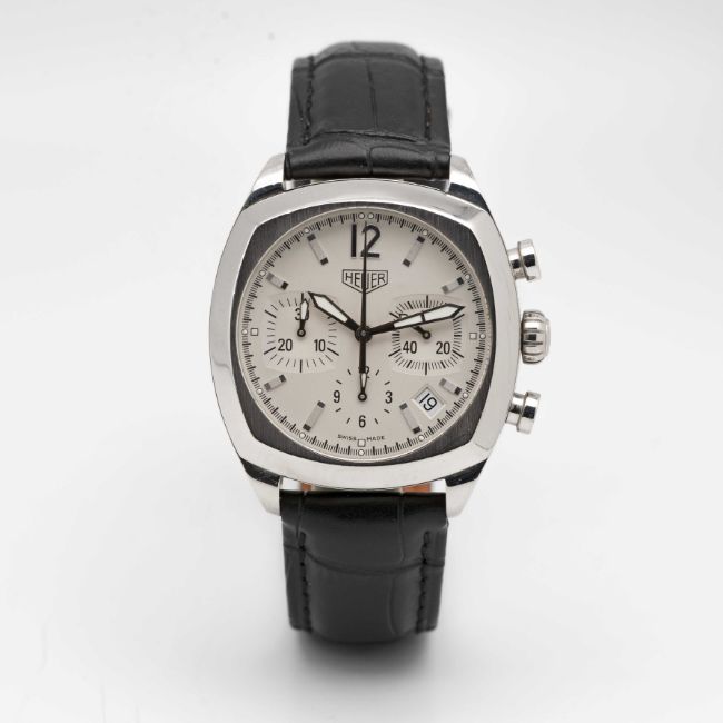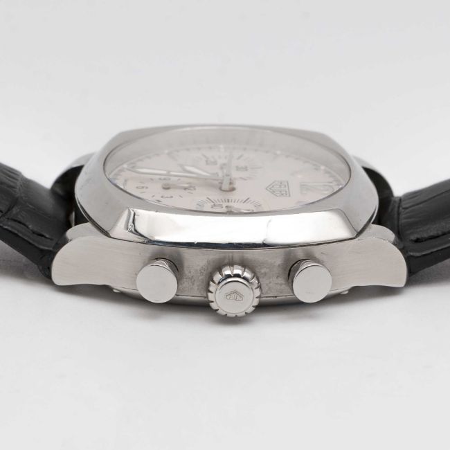 A GENTLEMAN'S STAINLESS STEEL HEUER MONZA CHRONOGRAPH WRIST WATCHCIRCA 2000, REF. CR2111 FIRST SERIES RE-EDITION Movement: Automatic, signed Heuer.Case: Width approx. 38mm, signed Heuer by Tag Heuer, numbered, original Heuer crown.Strap: TAG Heuer leather strap with Heuer pin buckle.  CONDITION REPORTDial: Original dial in excellent condition. Movement: Running & functioning at present, timekeeping and accuracy cannot be guaranteed. Case: In very good condition, with some scratches due to general use. Strap/Bracelet: In excellent condition.