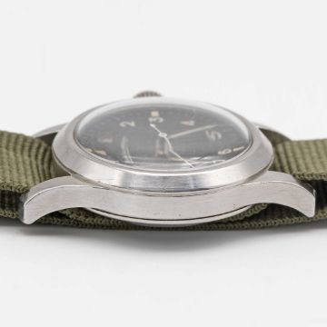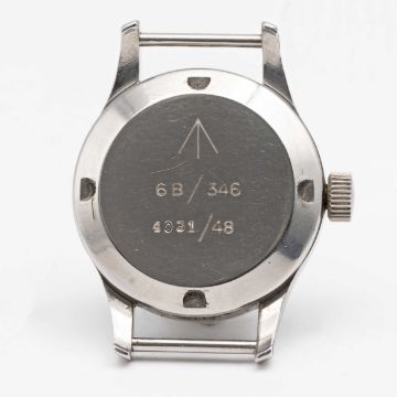 A RARE GENTLEMAN'S STAINLESS STEEL BRITISH MILITARY JAEGER LECOULTRE MARK 11 RAF PILOTS WRIST WATCHDATED 1948Movement: Manual wind with hacking seconds, cal. 488/sbr, signed Jaeger-LeCoultre, numbered 591,xxx.Case: Diameter approx. 35mm, fixed bars, screw back, signed LeCoultre Co, issue markings ^ 6B/346 4031/48, dust cap.Strap: NATO.CONDITION REPORTDial: Original dial in good condition, showing some signs of age.Movement: Running & functioning at present, timekeeping and accuracy cannot be guaranteed.Case: In very good condition, with some small scratches due to use.Strap/Bracelet: In excellent condition.