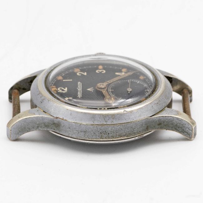 A GENTLEMAN'S BRITISH MILITARY JAEGER LECOULTRE W.W.W. WRIST WATCHCIRCA 1945, PART OF THE "DIRTY DOZEN"Movement: Manual wind, cal. 479, signed Jaeger-LeCoultre, numbered.Case: Diameter approx. 35mm, fixed bars, nickel plated case with stainless steel screw back, signed LeCoultre Co, issue markings 281508 ^ W.W.W. F10836Strap: NATO.CONDITION REPORTDial: Original dial in very good condition.Movement: Running & functioning at present, timekeeping and accuracy cannot be guaranteed.Case: In very good condition, with some wear due to general use.Strap/Bracelet: In excellent condition.