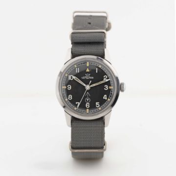 A RARE GENTLEMAN'S STAINLESS STEEL BRITISH MILITARY ROYAL NAVY LEMANIA WRIST WATCHDATED 1965, REF. 920-64 ISSUED TO ROYAL NAVY DIVING SUPERVISORSMovement: 17J, manual wind, cal. 3060, signed Lemania, numbered 1,7xx,xxx.Case: Diameter approx. 35mm, EPSA super compressor, screw back, numbered, issue markings ^ 0552/160647 230/65, replacement crown.Strap: NATO.CONDITION REPORTDial: Original dial in very good condition, showing some small signs of age.Movement: Running & functioning at present, timekeeping and accuracy cannot be guaranteed.Case: In very good condition, with some small scratches due to general use.Strap/Bracelet: In excellent condition.