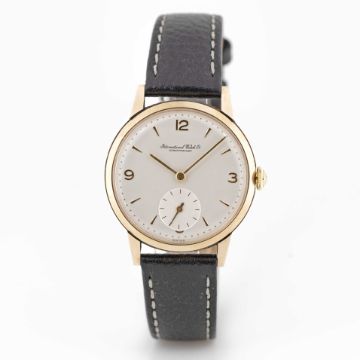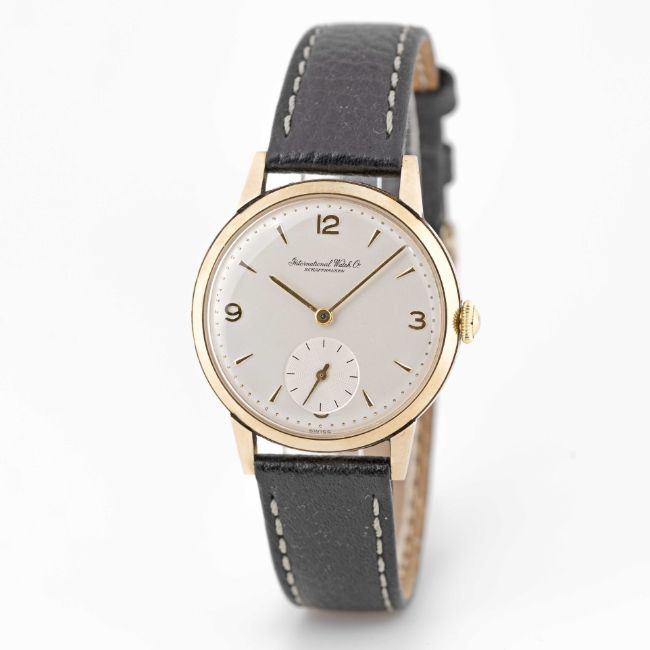 A GENTLEMAN'S 9CT SOLID GOLD IWC WRIST WATCHCIRCA 1960sMovement: Manual wind, cal. 88, signed International Watch Co, numbered. 1,6xx,xxxCase: Diameter approx. 34mm, snap back, marked DS&S, 19ct hallmarks, numbered, presentation inscription.Strap: Leather.CONDITION REPORTDial: Original dial in excellent condition.Movement: Running & functioning at present, timekeeping and accuracy cannot be guaranteed.Case: In very good condition, with some light scratches due to general use.Strap/Bracelet: In very good condition.