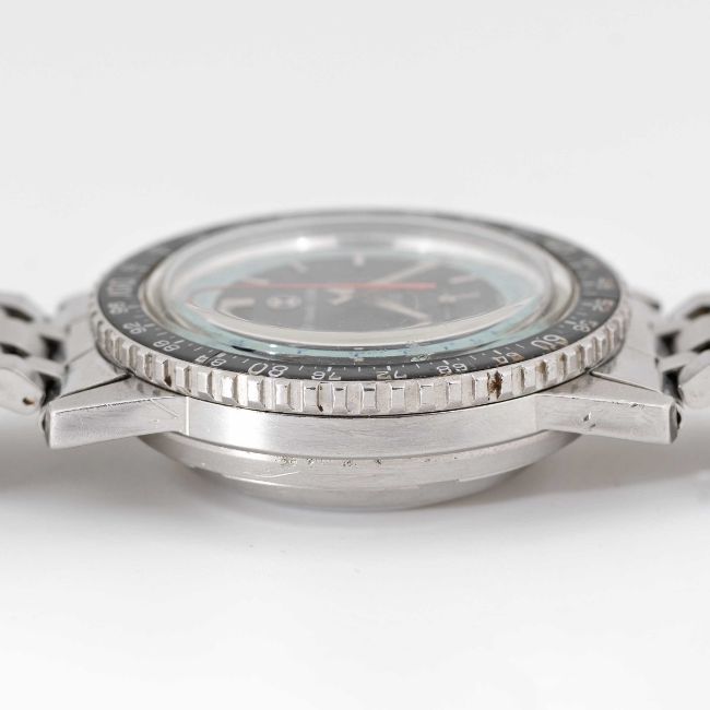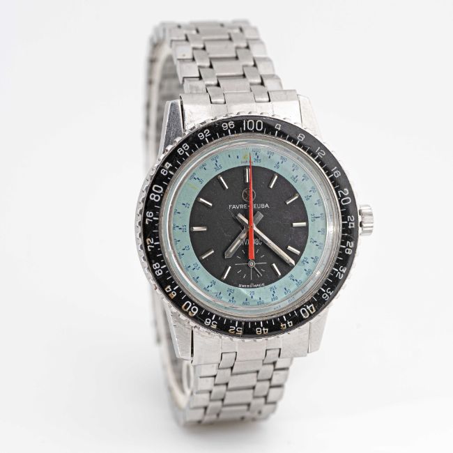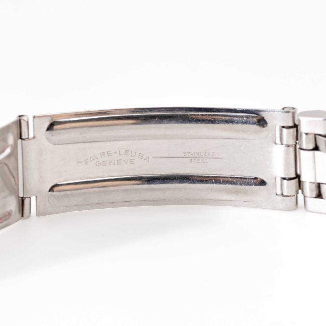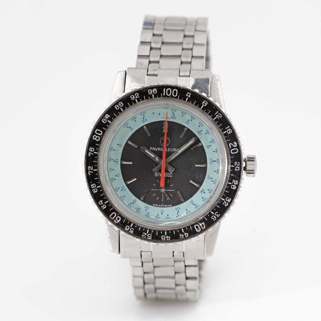 A RARE GENTLEMAN'S STAINLESS STEEL FAVRE LEUBA BIVOUAC ALTIMETER BAROMETER BRACELET WATCHCIRCA 1960s, REF. 53213Movement: Manual wind, signed Favre-Leuba. Case: Diameter approx. 40mm, screw back, air pressure capsule, emblem embossed on case back, signed Favre-Leuba Bivouac, numbered, altitude scale bakelite bezel.Bracelet: Original stainless steel Favre-Leuba bracelet.CONDITION REPORTDial: Original dial in very good condition, showing some small signs of age.Movement: Running at present, timekeeping and functionality cannot be guaranteed.Case: In good condition, with some scratches and wear due to general use.Strap/Bracelet: In very good condition.