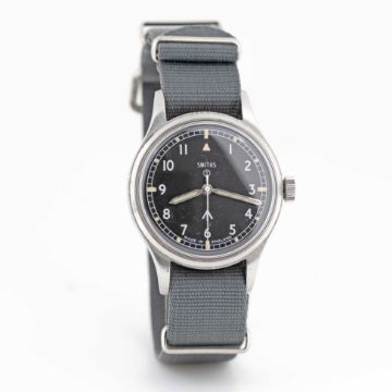 A GENTLEMAN'S STAINLESS STEEL BRITISH MILITARY SMITHS WRIST WATCHDATED 1970, ISSUED TO THE ARMYMovement: 17J, manual wind, "hacking" seconds, signed Made in England, numbered.Case: Diameter approx. 35mm, fixed bars, screw back, issue markings W10/6645-99-961-4045 ^ 2486/70, dust cover.Strap: NATO.CONDITION REPORTDial: Original dial in excellent condition, showing some small signs of age.Movement: Running & functioning at present, timekeeping and accuracy cannot be guaranteed.Case: In very good condition, with small scratches due to use.Strap/Bracelet: In excellent condition.