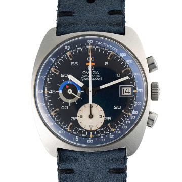 A GENTLEMAN'S SIZE STAINLESS STEEL OMEGA SEAMASTER AUTOMATIC CHRONOGRAPH WRIST WATCHCIRCA 1970s, REF. 176.007 WITH BLUE DIALMovement: 22J, automatic, cal. 1040, signed Omega, numbered 34,6xx,xxx.Case: Diameter approx. 38.5mm, screw back, signed Omega Watch Co, Omega crown.Strap: Perforated leather.CONDITION REPORTDial: Original dial in excellent condition, showing some small signs of age.Movement: Running & functioning at present, timekeeping and accuracy cannot be guaranteed.Case: In very good condition, with some small scratches due to general use.Strap/Bracelet: In fair condition.