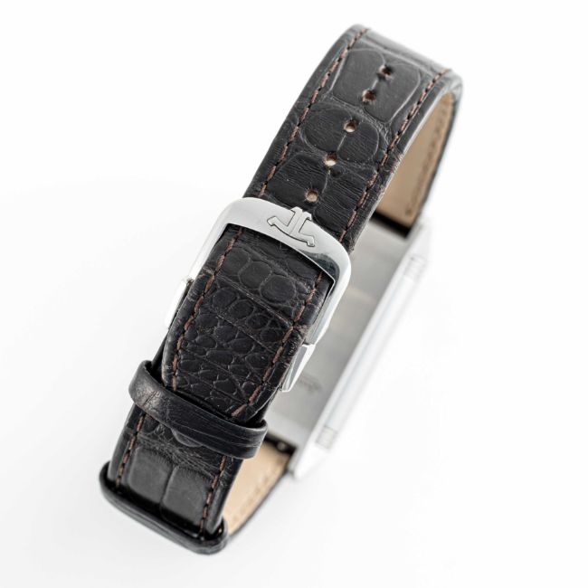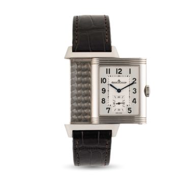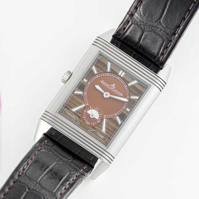 A RARE GENTLEMAN'S SIZE STAINLESS STEEL JAEGER LECOULTRE ATELIER REVERSO DUOFACE TRAVEL TIME WRIST WATCHDATED 2019, REF. 215.8.D4 WITH TIGER EYE STONE DIAL, ACCOMPANIED BY ITS ORIGINAL BOX, BOOKLETS & WARRANTY CARDMovement: 19J, manual wind, cal. 854A/2, signed Jaeger-LeCoultre 1000 Hours Control, numbered.Case: Measures approx. 46.6mm by 28.2mm, Reverso case, signed Jaeger-LeCoultre Reverso, 1000 Hours Control, numbered, original JLC crown.Strap: Original JLC leather strap & folding clasp.CONDITION REPORTDial: Original dials in excellent condition.Movement: Running & functioning at present, timekeeping and accuracy cannot be guaranteed.Case: In excellent condition, with some light scratches due to general use.Strap/Bracelet: In very good condition.