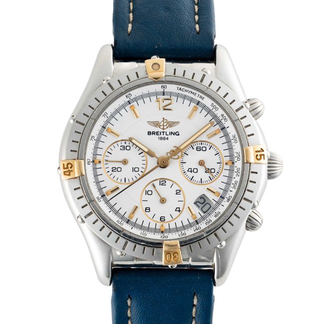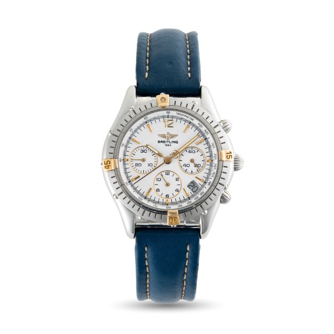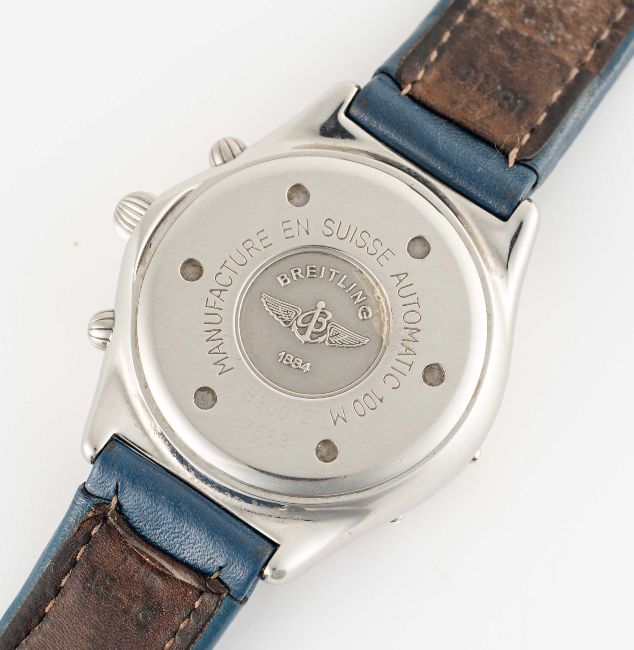 A GENTLEMAN'S SIZE STAINLESS STEEL BREITLING COCKPIT AUTOMATIC CHRONOGRAPH WRIST WATCHCIRCA 1990s, REF. B30012 WITH WHITE DIALMovement: 38J, automatic, cal. 2892A2, signed Breitling.Case: Diameter approx. 37mm, screw back, signed Breitling, numbered, original Breitling crown & pushers.Bracelet: Breitling leather strap & pin buckle.CONDITION REPORTDial: Original dial in excellent condition.Movement: Running & functioning at present, timekeeping and accuracy cannot be guaranteed.Case: In excellent condition, with some light scratches due to general use.Strap/Bracelet: In fair/poor condition.