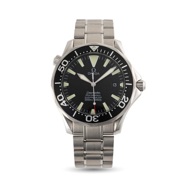 A GENTLEMAN'S LARGE SIZE OMEGA SEAMASTER PROFESSIONAL 300M AUTOMATIC BRACELET WATCH CIRCA 2008, REF. 2254.50.00 WITH  BLACK "WAVE" DIAL, OMEGA BOX, BOOKLET, WATCHFINDER PREOWNED PURCHASE RECEIPT FROM 2018 AND BLACK OMEGA NATO STRAP Movement: Automatic chronometer, signed Omega, numbered.Case: Diameter approx. 41mm, screw back, Seamaster emblem embossed on case back, numbered, 60 minute rotating bezel, helium escape valve, Omega crowns.Bracelet: Original Omega Seamaster Professional bracelet, numbered (62) 1610/930.CONDITION REPORTDial: Original dial in excellent condition.Movement: Running & functioning at present, timekeeping and accuracy cannot be guaranteed.Case: In very good condition, with some small scratches due to general use.Strap/Bracelet: In excellent condition.
