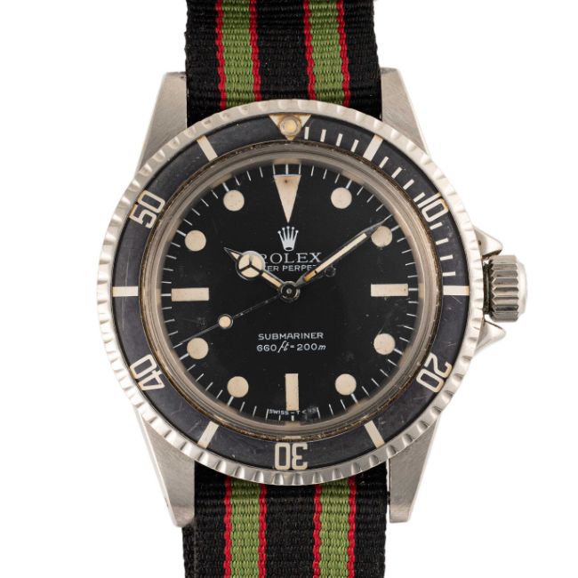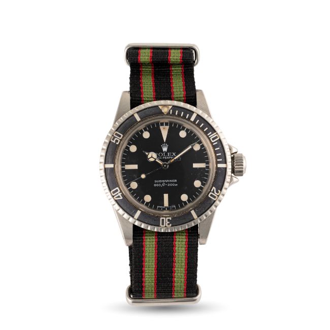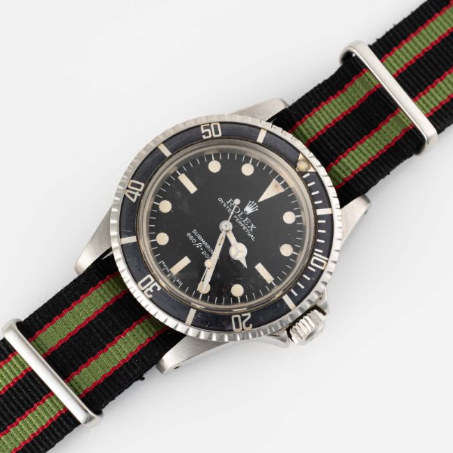 A GENTLEMAN'S SIZE STAINLESS STEEL ROLEX OYSTER PERPETUAL SUBMARINER WRIST WATCHCIRCA 1982, REF. 5513 WITH MARK 3 MAXI DIAL Movement: 26J, automatic, cal. 1520, signed Rolex S.A.Case: Diameter approx. 40mm, Oyster case, signed Montres Rolex S.A., serial no. 7,2xx,xxx, 60 minute rotating bezel, Rolex Triplock crown.Bracelet: NATO.  CONDITION REPORTDial: Original dial in very good condition, showing some small signs of age. Movement: Running & functioning at present, timekeeping and accuracy cannot be guaranteed. Case: In excellent condition, with light scratches due to general use, plexiglass scratched. Strap/Bracelet: In good condition.