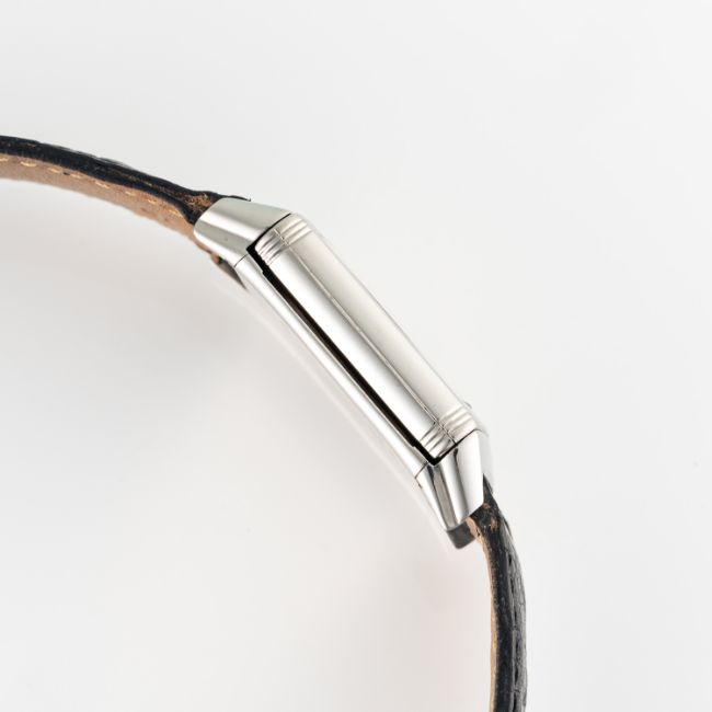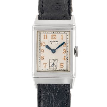 A GENTLEMAN'S SIZE STAINLESS STEEL LECOULTRE REVERSO WRIST WATCHCIRCA 1930sMovement: Manual wind, signed LeCoultre.Case: Measures approx. 38.3mm by 23mm, reversible case with blank reverse side, numbered 14xxx. Strap: Leather.  CONDITION REPORTDial: Refinished dial in excellent condition. Movement: Running & functioning at present, timekeeping and accuracy cannot be guaranteed. Case: In excellent condition, with some light scratches due to general use. Strap/Bracelet: In good condition.