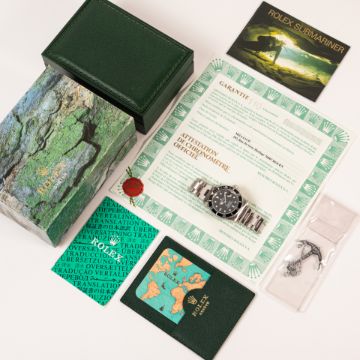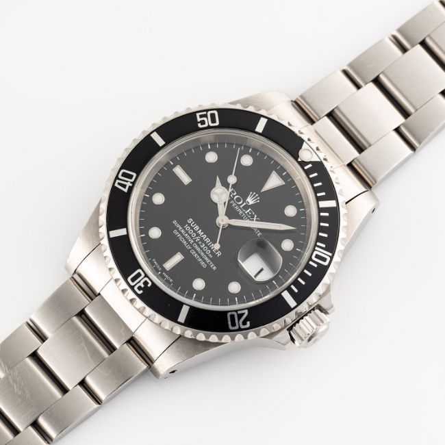 A GENTLEMAN'S SIZE STAINLESS STEEL ROLEX OYSTER PERPETUAL DATE SUBMARINER BRACELET WATCHDATED 1999, REF. 16610 WITH ORIGINAL BOX, GUARANTEE, BOOKLETS & ANCHOR Movement: 31J, automatic chronometer, quick-set date, cal. 3135, signed Rolex, numbered.Case: Diameter approx. 40mm, Oyster case, signed Montres Rolex S.A., A series, 60 minute rotating bezel, sapphire crystal, Rolex triplock crown.Bracelet: Original Rolex Oyster Submariner bracelet, numbered X10/93150/501B.  CONDITION REPORTDial: Original dial in excellent condition. Movement: Running & functioning at present, timekeeping and accuracy cannot be guaranteed. Case: In good condition, with small scratches due to general use, original Rolex case back sticker still applied. Strap/Bracelet: In good condition, with scratches.