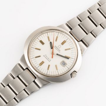 A GENTLEMAN'S SIZE STAINLESS STEEL OMEGA GENEVE DYNAMIC AUTOMATIC DATE BRACELET WATCH CIRCA 1970s WITH MATTE WHITE DIAL Movement: Automatic, signed Omega, numbered.Case: Diameter measures approx. 41mm, signed Omega Watch Co, Omega plexiglass glass, Omega crown.Bracelet: Omega bracelet. CONDITION REPORTDial: Original dial in very good condition, showing small signs of age.Movement: Running & functioning at present, timekeeping and accuracy cannot be guaranteed.Case: In very good condition, with some scratches due to general use.Strap/Bracelet: In very good condition with light surface scratches.