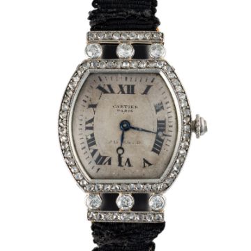 A LADY'S FINE PLATINUM & 18K SOLID GOLD DIAMOND CARTIER TORTUE WRIST WATCHCIRCA 1920s Movement: 18J, manual wind, signed Cartier Paris, numbered. Case: Measures approx. 19.8mm by 28.1mm including the original diamond set lugs, marked EJ, two sets of numbers on the case back, original diamond set crown. Strap: Textile strap with the original 18k pink gold and diamond set Cartier folding clasp. CONDITION REPORTDial: Original dial in poor condition.Movement: Running & functioning at present, timekeeping and accuracy cannot be guaranteed.Case: In very good condition, with some scratches and wear due to general use.Strap/Bracelet: In door condition, clasp is in very good condition.
