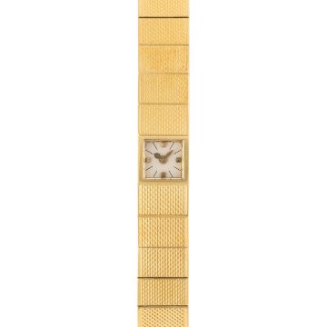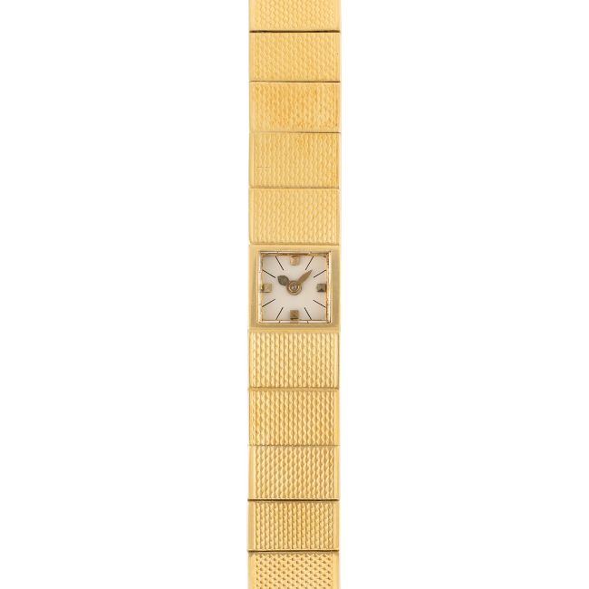 A LADY'S FINE 18K SOLID GOLD VACHERON CONSTANTIN BACK WIND BRACELET WATCH CIRCA 1950s  Movement: Manual wind, signed Vacheron & Constantin.Case: Width approx. 7.5mm, signed Vacheron & Constantin Geneve, numbered.Bracelet: Original 18k integral Vacheron & Constantin bracelet, size approx. 16cm. CONDITION REPORTDial: Original dial in excellent condition.Movement: Running & functioning at present, timekeeping and accuracy cannot be guaranteed.Case: In excellent condition, with some light scratches due to general use.Strap/Bracelet: In excellent condition.