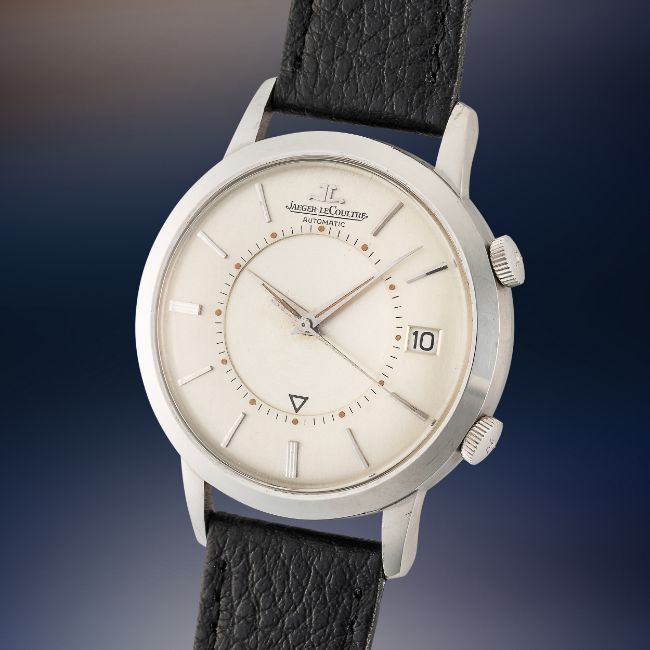 A GENTLEMAN'S SIZE STAINLESS STEEL JAEGER LECOULTRE MEMOVOX AUTOMATIC ALARM WRIST WATCHCIRCA 1960, REF. E855Movement: "Bumper" automatic, cal. K825, signed Jaeger-LeCoultre, numbered.Case: Diameter approx. 37mm, two-part case back, signed LeCoultre Co, numbered, JLC crowns.Strap: Leather. CONDITION REPORTDial: Original dial in excellent condition.Movement: Running & functioning at present, timekeeping and accuracy cannot be guaranteed.Case: In excellent condition, with some light scratches due to general use.Strap/Bracelet: In excellent condition.