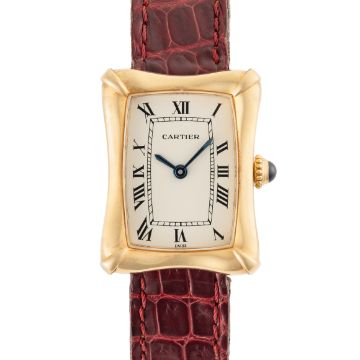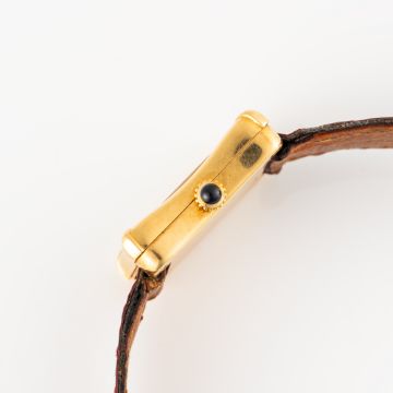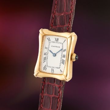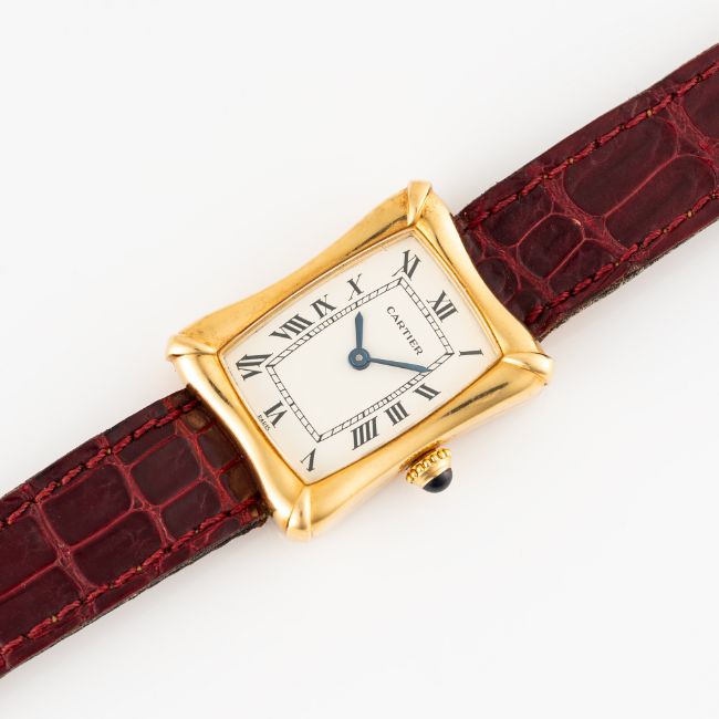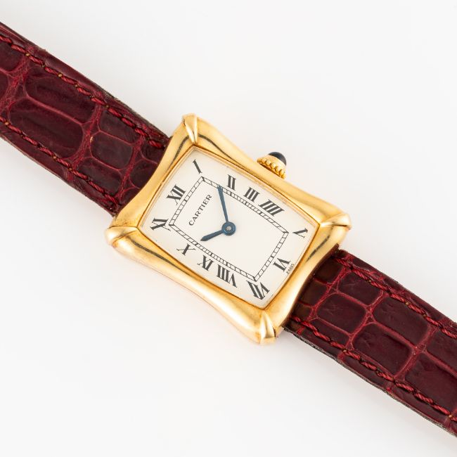 A VERY RARE LADY'S 18K SOLID GOLD CARTIER PARIS BAMBOO COUSSIN WRIST WATCH