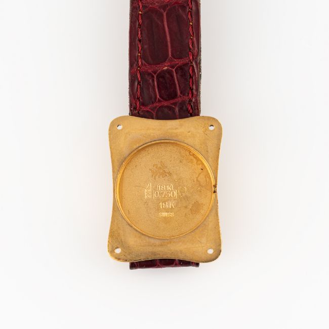 Case: Measures approx. 26.7mm by 20.7mm, 18k hallmarks, numbered, sapphire crown.