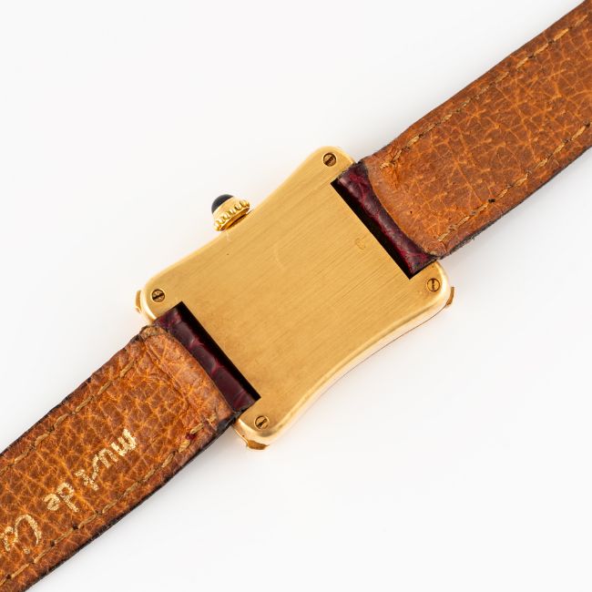 Strap: Cartier leather strap & 18k solid gold pin buckle, numbered.