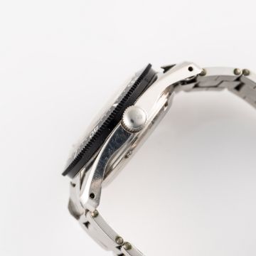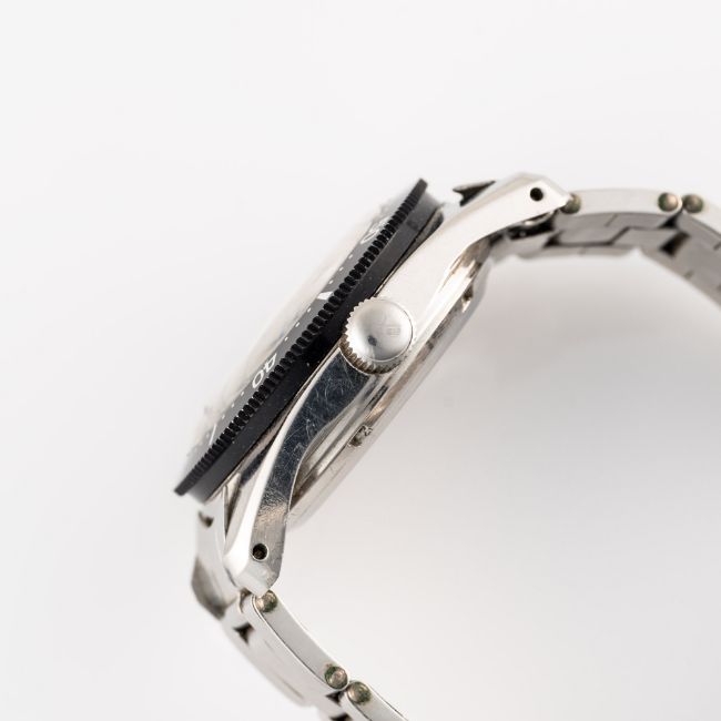 A MEDIUM SIZE STAINLESS STEEL TITUS CALYPSOMATIC DIVERS BRACELET WATCH CIRCA 1960s, REF. 7110 WITH GLOSS BLACK GILT DIALMovement: 17J, automatic, cal. 2472, signed Solvil & Titus. Case: Diameter approx. 31.5mm, screw back, signed Solvil et Titus Geneve, 60 minute bi-rotational bezel, screw down crown, numbered.Bracelet: Stainless steel. CONDITION REPORTDial: Original dial in excellent condition.Movement: Running & functioning at present, timekeeping and accuracy cannot be guaranteed.Case: In very good condition, with some light scratches due to general use.Strap/Bracelet: In good condition with some surface scratches.