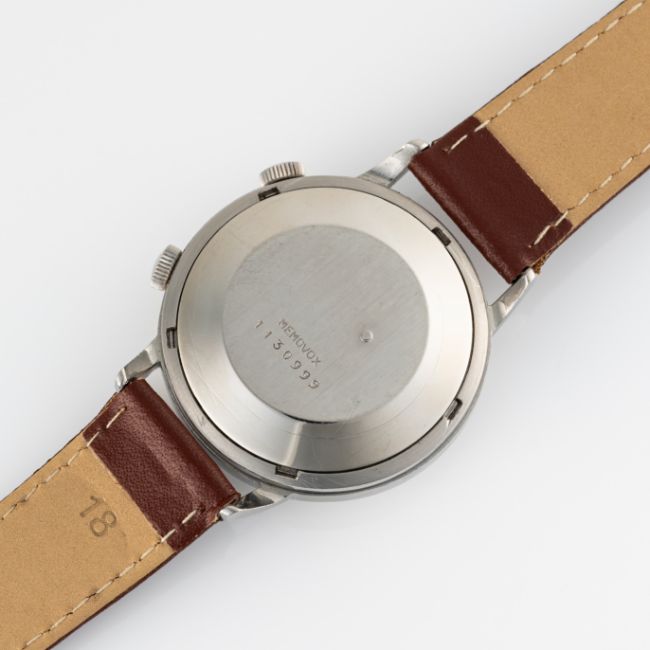 A GENTLEMAN'S SIZE STAINLESS STEEL JAEGER LECOULTRE MEMOVOX AUTOMATIC ALARM WRIST WATCHCIRCA LATE 1960s, REF. E855Movement: "Bumper" automatic, cal. K825, signed Jaeger-LeCoultre, numbered.Case: Diameter approx. 37.5mm, two-part case back, signed Memovox, numbered 1,13x,xxx, JLC crowns.Strap: Leather. CONDITION REPORTDial: Original dial in excellent condition, showing some small signs of age.Movement: Running & functioning at present, timekeeping and accuracy cannot be guaranteed.Case: In good condition, with some scratches & light wear due to general use.Strap/Bracelet: In very good condition.