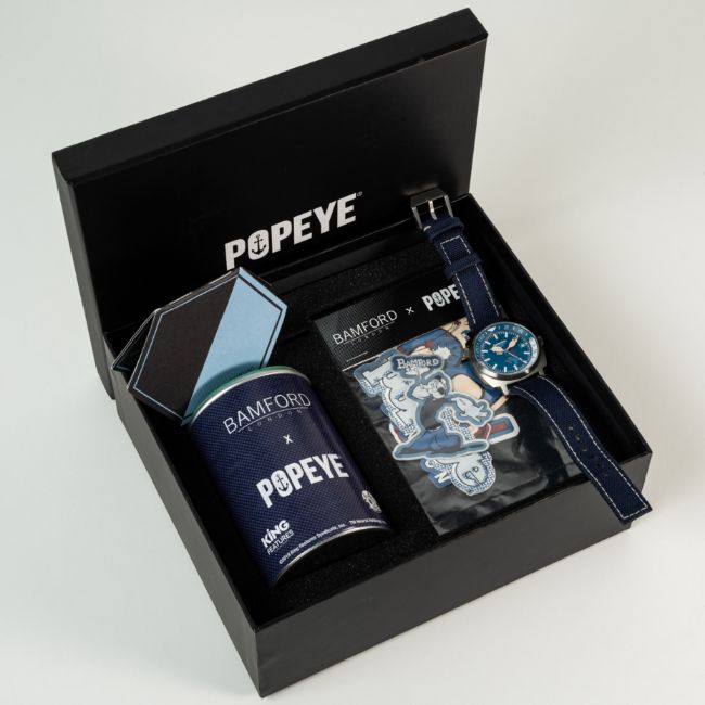A GENTLEMAN'S SIZE STAINLESS STEEL BAMFORD POPEYE AUTOMATIC GMT WRIST WATCHDATED 2019, LIMITED EDITION OF 50 PIECES CELEBRATING 90 YEARS OF POPEYE, WITH ORIGINAL BOX & PAPERWORK Movement: Automatic.Case: Diameter approx. 40mm, signed Bamford London, numbered, Popeye Since 1929 logo etched on caseback.Strap: Original strap.  CONDITION REPORTDial: Original dial in excellent condition. Movement: Running & functioning at present, timekeeping and accuracy cannot be guaranteed. Case: In excellent condition, with some light scratches due to general use. Strap/Bracelet: In fair condition, showing signs of use.