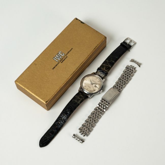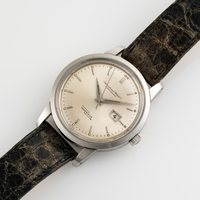 A GENTLEMAN'S STAINLESS STEEL IWC INGENIEUR AUTOMATIC WRIST WATCH  CIRCA 1960s, REF. 666 WITH SILVER DIAL, ACCOMPANIED BY AN ORIGINAL IWC GF BRACELET & BOX Movement: 21J, automatic, cal. 8531, signed International Watch Co, numbered 1,7xx,xxx.Case: Diameter approx. 36.5mm, screw back, signed International Watch Co, numbered 1,7xx,xxx, anti-magnetic dust cover, IWC "Fish" crown.Bracelet: Leather strap and IWC "Beads of Rice" GF bracelet, dated 1/66, end links numbered 1A.    CONDITION REPORTDial: Original dial in excellent condition. Movement: Running & functioning at present, timekeeping and accuracy cannot be guaranteed. Case: In excellent condition, with some small scratches due to general use. Strap/Bracelet: Steel bracelet in fair condition, showing signs of wear, leather strap in fair condition also.