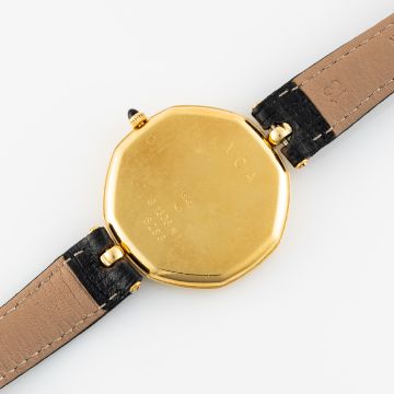 Case: Width approx. 32.5mm, two piece case, signed Gerald Genta, V.C.A, 18k hallmarks, numbered.