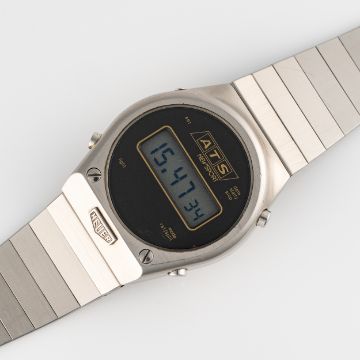 A RARE GENTLEMAN'S SIZE STAINLESS STEEL HEUER KENTUCKY ATS NEW SPORT FORMULA 1 LCD BRACELET WATCH CIRCA 1977, REF. 105.703 PRODUCED FOR THE ATS GERMAN FORMULA 1 TEAMMovement: Quartz, signed Heuer.Case: Width approx. 39mm, signed Heuer, numbered.Strap: Original Heuer stainless steel bracelet. In 1977, the German racing team ATS made its debut in Formula 1. At the time, Formula 1 cars had little in the way of major sponsorship or prominent advertising. Around the same period, the Swiss watchmaker Heuer (now TAG Heuer) had signed a notable agreement with Scuderia Ferrari. Enzo Ferrari, skeptical of the official timekeeping in Formula 1, entrusted Heuer with the responsibility of timekeeping for the team. In return, Heuer’s logo was permitted to appear on Ferrari cars.To commemorate the partnership, and at Enzo Ferrari’s personal request, Heuer produced a limited run of their new Chronosplit model—specifically the Chronosplit 100.703—customized with the Ferrari logo on the dial. These exclusive watches were gifted to Ferrari team members, including drivers, staff, and close associates. Today, these Ferrari-branded Chronosplits are highly sought after by collectors and can be worth several thousand euros.Inspired by Ferrari’s collaboration with Heuer, ATS sought a similar arrangement when they entered Formula 1. They approached Heuer to create branded watches for their own team. In 1977, a Heuer representative delivered approximately 120 newly released Heuer Kentucky watches (model 105.703) featuring the ATS logo to the team's headquarters in Bad Dürkheim. At the time, quartz watches were in high demand, and the Kentucky was Heuer’s latest quartz chronograph. According to one ATS mechanic, the watches were kept in the office, and distributed informally—drivers, staff, and friends each took a few.ATS (Auto Technisches Spezialzubehör) was a German motorsport team founded by Günter Schmid. The team initially competed in Formula 2 before moving to Formula 1 from 1977 to 1984. Based in Bad Dürkheim near Mannheim, ATS fielded several notable drivers over the years, including Jean-Pierre Jarier, Hans Heyer, Hans Binder, Jochen Mass, Keke Rosberg, Hans-Joachim Stuck, and Manfred Winkelhock. CONDITION REPORTDial: Original dial in excellent condition.Movement: Running & functioning at present, timekeeping and accuracy cannot be guaranteed.Case: In excellent condition, with some light scratches due to general use.Strap/Bracelet: In excellent condition.